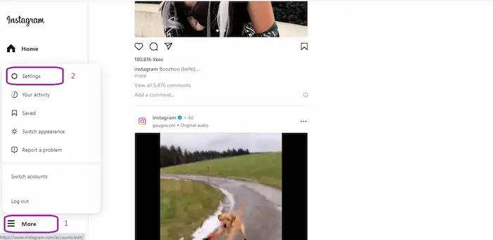 - Hal pertama yang perlu kamu lakukan adalah masuk ke akun Instagram kamu terlebih dahulu. Kemudian lihatlah pojok kiri paling bawah. Setelah itu klik bar tiga garis tebal More. Kemudian akan muncul beberapa icon seperti Settings, Your activity, Saved, Switch appearance, dan Report a problem. Dalam hal ini, kamu hanya perlu memilih Settings.