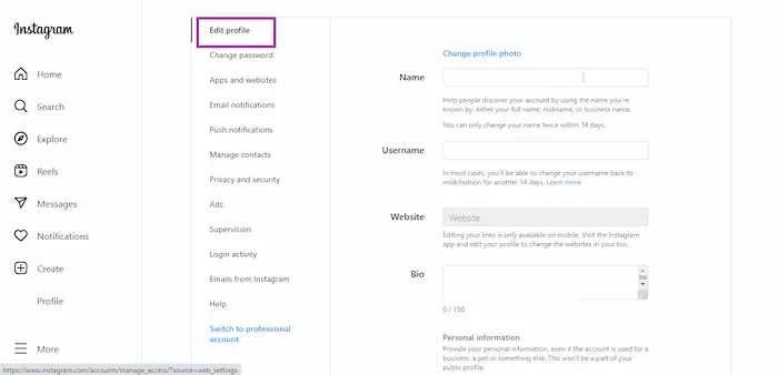- Kali ini kamu akan dibawa ke bagian Edit Profile ,