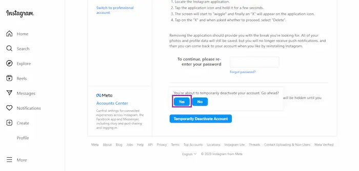 - Ketika kamu mengklik Temporarily Deactivate Account akan muncul pertanyaan You’re about to temporarily deactivate your account. Go ahead? dan kamu bisa memilih klik Yes .