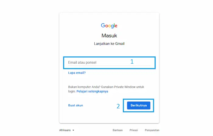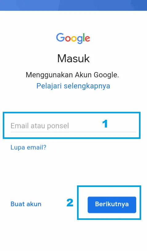 - Dalam hal ini, kamu harus memasukkan email atau nomor telepon yang digunakan ketika mendaftar gmail. Setelah itu, klik berikutnya.