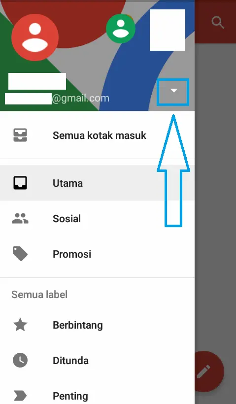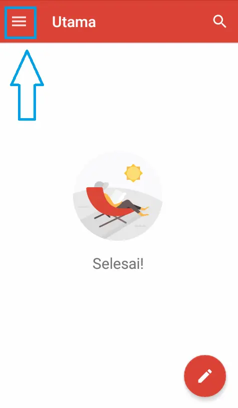 - Setelah itu, masuk ke aplikasi gmail dan klik ikon garis tiga putih menumpuk.