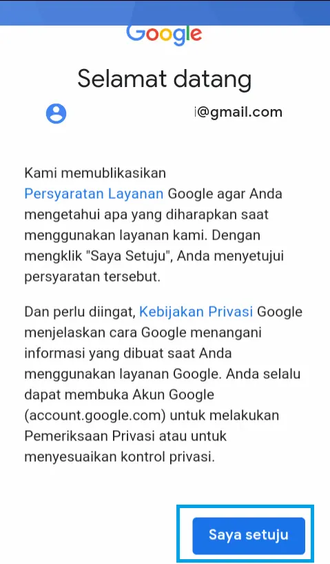 - Dalam hal ini, kamu akan melihat persyaratan layanan dan kebijakan privasi secara singkat lalu kamu bisa lanjut dengan klik saya setuju.