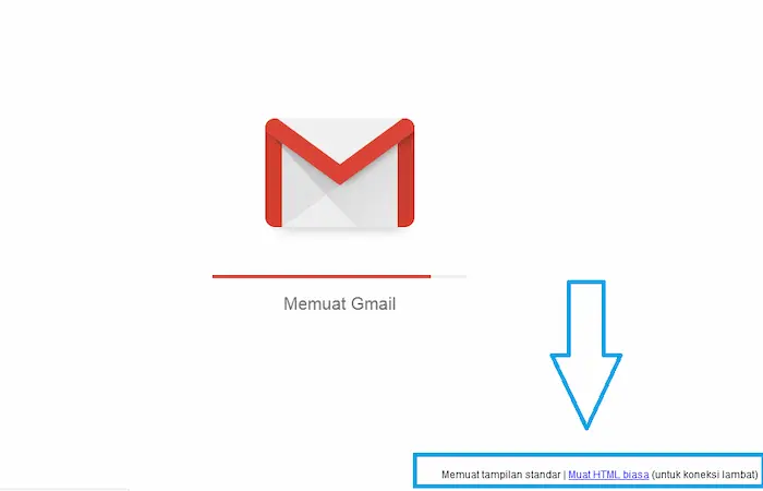- Tunggu beberapa menit karena akun gmail sedang melakukan proses. Dalam hal ini, akun gmail memberikan kamu kesempatan untuk memilih apakah menggunakan tampilan standar yang mana akan secara otomatis. Akan tetapi, apabila koneksi internet kamu sangat lambat maka ada baiknya kamu memilih tampilan HTML biasa untuk mempercepat proses masuk ke akun gmail.